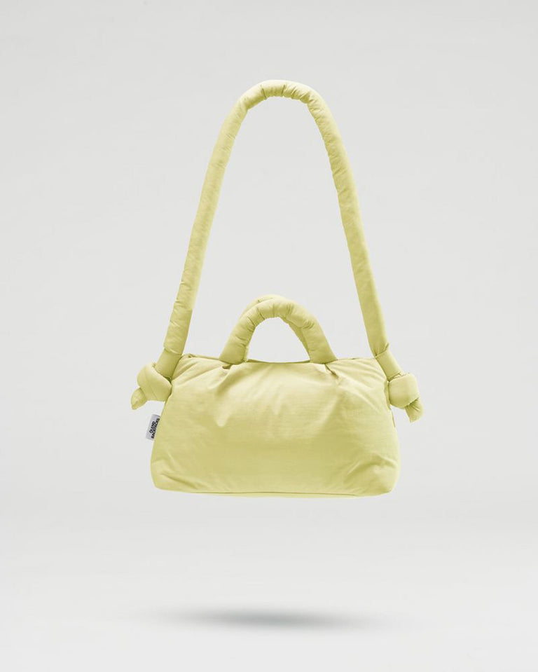 Lime Miniona soft bag de la marca Ölend. Es la versión pequeña de su bolso Ona. Hinchada y ligera, es perfecta para llevar tus cosas esenciales.