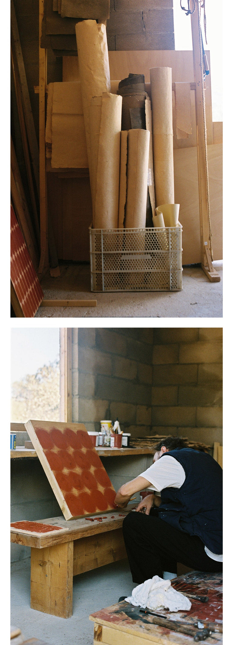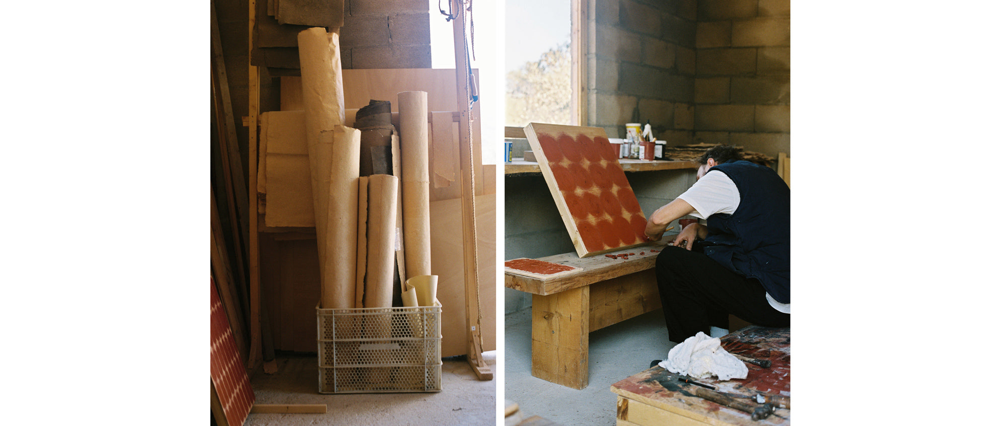 La Martita의 작업실은 전형적인 예술가의 공간입니다. Alejo가 오랜 시간 동안 수집한 다양한 질감의 그림 재료, 도구, 종이로 가득 차 있습니다. 몇 년 동안 그는 멕시코, 인도, 모로코, 현재는 카탈로니아 등 세계 여러 지역의 역할을 탐색했습니다. 여기에서 그는 종이 장인을 만났는데, 그와 함께 "물감과 매우 잘 어울리는 색조"라는 아주 특별한 질감을 만들어냈고, 그는 이를 그의 최근 작품에 많이 사용했습니다.